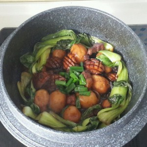 加入油菜,继续炖5分钟。放葱段。大火收汁。