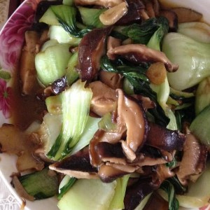 油开锅后放入花椒粒爆香后 花椒粒捞出 2放入葱姜蒜爆香后放入油菜翻炒倒入生抽翻炒均匀后 倒入香菇继续翻炒 3 翻炒均匀后 放入适量盐 蚝油 鸡精翻炒均匀 加入少量白糖 翻炒出锅