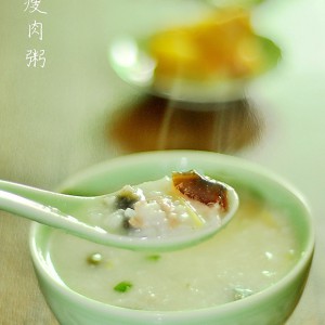 煮到米粒开花,变稠的时候,加入一半份量的皮蛋。转小火煮10分钟 。