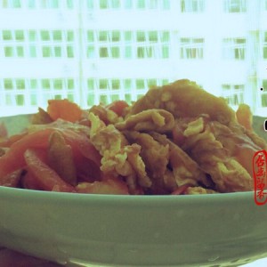 鸡蛋火候依个人爱好,我本身喜欢过油火大一点的,放入西红柿。