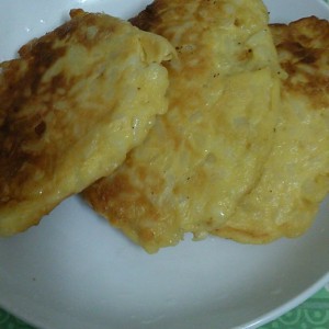 煮好的土豆压碎,取两个鸡蛋打成蛋液,加入适量盐,鸡精,将压碎的土豆拌进去,加入面粉,牛奶,搅拌均匀,不要太稀也不要太稠,看着是糊状就可以了(稀了加面粉,稠了加牛奶)