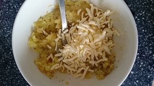 放入芝士,我喜欢芝士,所以放了不少,大家根据自己口味放