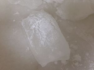 在桌上撒下其余50g的一部分薯粉,然后将皮倒在桌上,裹一点粉 如图