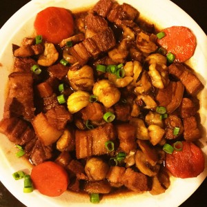 半小时后,放入板栗再炖15分钟,最后加入冰糖和少许盐调味。