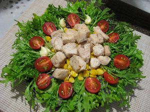 挤上适量的玉米口味的沙拉酱,吃时拌匀即可;
