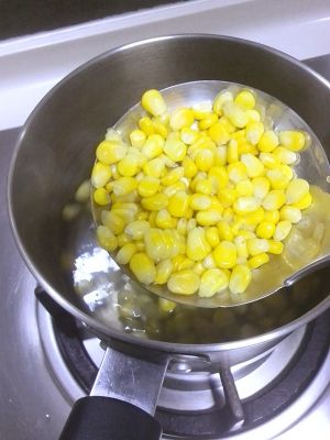 甜玉米粒是冷冻的,过一下开水,捞出待用;