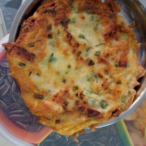 锅烧热,加少许油,放一勺进去,压扁,小火慢煎