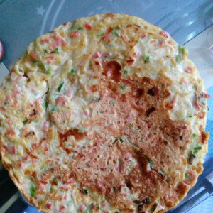 电饼铛加热放入适当的花生油,把搅拌均匀的食材放入。