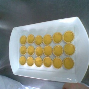用榨汁机把洗干净的姜进行榨汁,用姜汁加入牛奶还有20克白糖拌柔滑,倒入蛋伞中