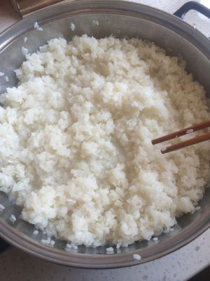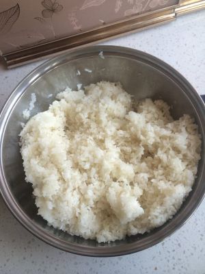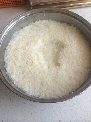 将圆糯米提前洗净泡水一晚后上锅蒸熟,晾温