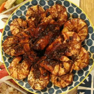 洗好的虾,减去头部的眼睛和尖尖,开背去沙线,剪尾巴。这样在烹制的时候会很容易入味
