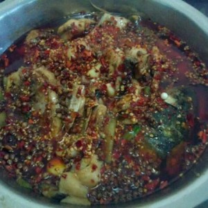 起锅后,把辣椒面倒在鱼肉面上,然后在锅中烧热油,把适量花椒放入锅中,然后马上起锅淋在鱼肉上,会听到嘶嘶的响声,香味扑鼻而来。