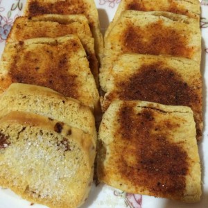 烤箱上下管170度预热10分钟,再把馒头片入烤箱烤15分钟,拿出翻面放入再烤15分钟。(注意:两面都要烤15分钟)