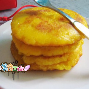 不粘锅放油,入南瓜饼,煎,一面煎好翻面煎至金黄即可