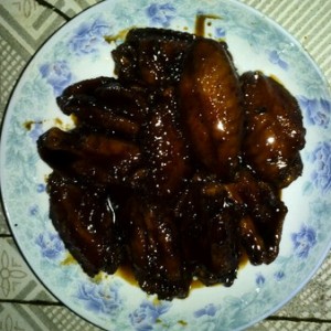 6:上色后就给可乐,漫过鸡中翅,开大火烧20分钟左右(时间以锅里鸡中翅为准)。
