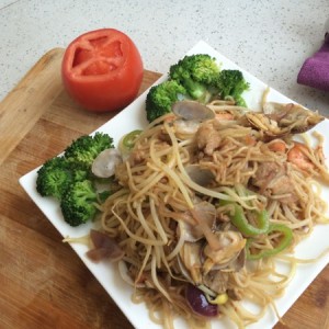 豆芽,面条用开水煮过一遍,其他菜类洗干净切好