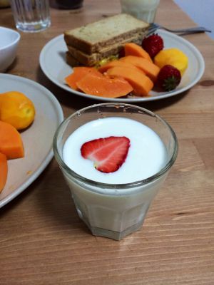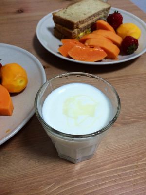 自制酸奶里加入炼乳(自制酸奶做法见小贴士。)