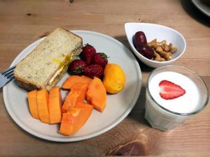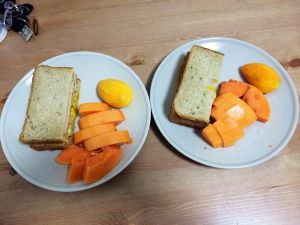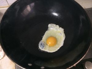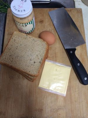 面包片上涂一层沙拉酱,加上煎好的鸡蛋。