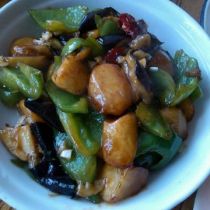 分别过油土豆块,茄子,辣椒。茄子多挤挤油。