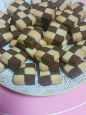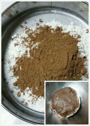 重复以上步骤制作可可面团,可可粉要和低粉混合过筛。冷藏30分钟