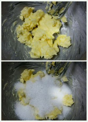 先制作原味面团,黄油软化,加入细砂糖或糖粉拌匀。不要打发。