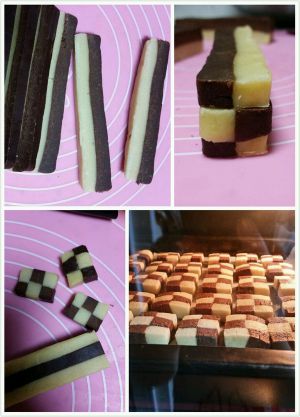 冷冻好,取出,切条,用蛋液粘在一起,喜欢小格子就切细一点,多粘几片。烤箱180度上下火10-15分钟。