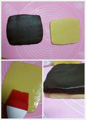 冷藏好的面团擀成厚片,刷上蛋液粘在一起。厚度随意。放入冷冻室冷冻30分钟。