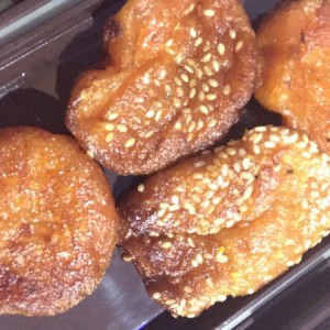 锅中中火烧油之6-7成热时,加入自己和好的南瓜饼放入锅中炸至金黄即可。