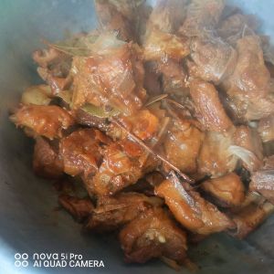 煎(炸)好的排骨控一下油,锅里留级少量油加入冰糖炒制融化加入水,老抽,耗油,味极鲜,料酒,盐,少量白酒(去腥增香),八角,香叶,桂皮。再把排骨放进去炖20分钟后收干汤汁即可!