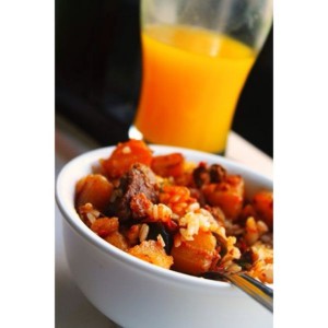 最后把炖好的菜倒在电饭煲的米饭上盖上焖一下就能吃了.可以再洒点香菜.
