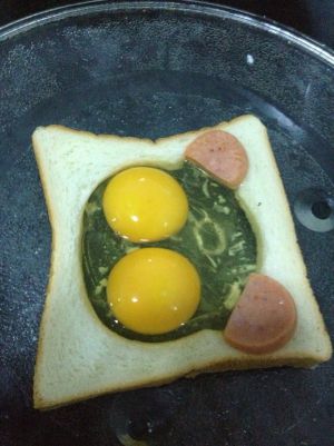 嘻嘻鸡蛋成熟度按个人喜好噢。最后加上两个小眼睛。