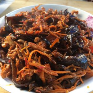 胡萝卜,木耳切丝备用