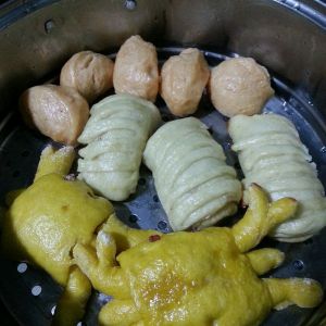 将弄好的螃蟹反过来,摆好螃蟹脚,然后用刀切出螃蟹夹。最后凉枸杞点缀上做眼睛!