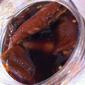 净锅内再加入清水,下姜片料酒烧开下入鸡脚煮约5分钟