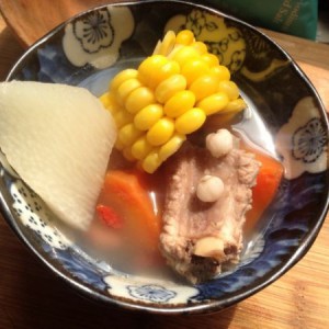 加入切好的胡萝卜山药玉米和洋葱,继续小火炖四十分钟,然后加枸杞再炖十分钟,调入盐、鸡精和胡椒粉