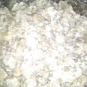 将腌好的肉加入面粉用手使劲儿的揉搓牛肉