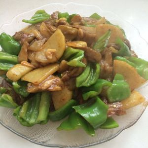 茄子去皮切块,土豆切片,辣椒切块。然后开始煎土豆和茄子。煎至两面金黄就可以了。