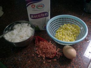 牛奶玉米鸡蛋火腿炖饭菜谱做法
