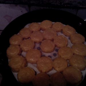 用模具做成饼状,就可以上锅蒸啦。我是用的做月饼的模具。