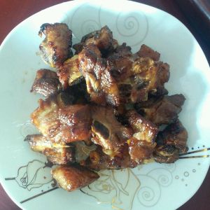 把锅里的油倒出剩下一点重新将排骨倒进去翻炒,加入料酒,到少许水,酱油,醋,红糖