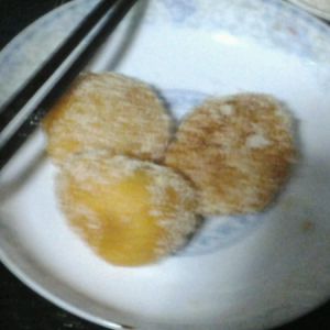 做成小小的饼加上面包糠,薄点容易熟