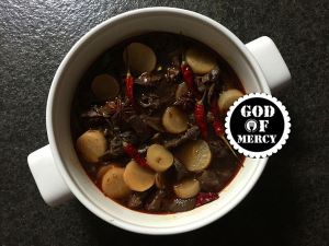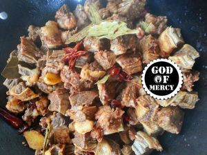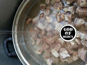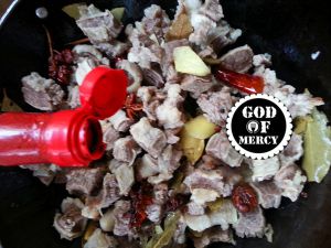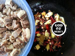 最后加入盐,倒进淹没牛腩表面的水,大火煮开,小火慢炖至熟透。