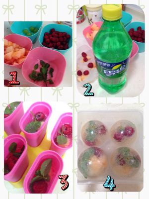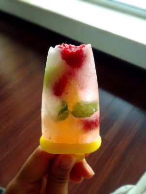 切好水果扔到雪糕模子里,浇上雪碧放入冷冻即可