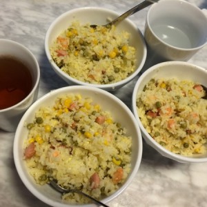 加入玉米粒和青豆粒,我用的是罐头,如果是生的玉米和青豆,则在最开始油热后就炒
