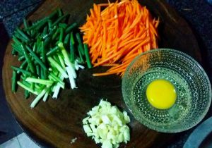 红萝卜,葱,蒜头,鸡蛋,准备好