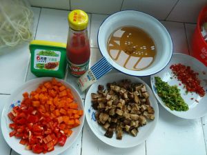 胡萝卜,红甜椒,香菇切丁。