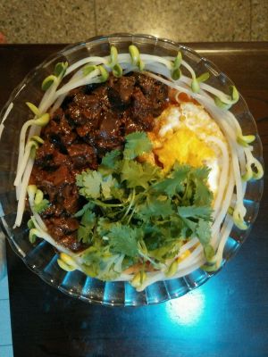 顺便来秀一个我的晚餐~香菇酱拌面~