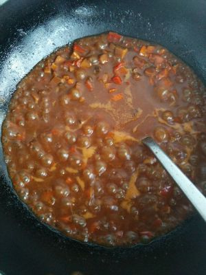 加入豆瓣酱和番茄酱,其实我还放了一点点沙拉酱,所以才说是怪力乱神的香菇酱~