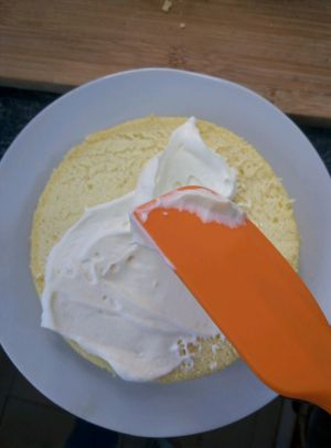 接下来就是装饰裸蛋糕了,一层蛋糕一层奶油一层蛋糕一层奶油……