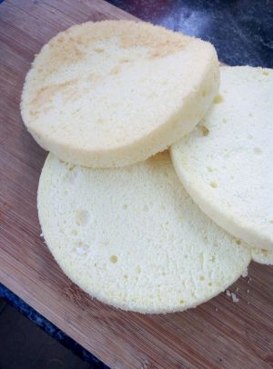 脱模后的蛋糕胚,均匀的分成三份备用。